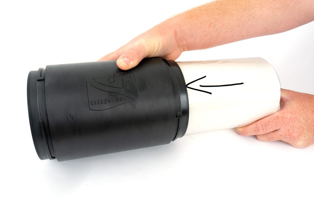 Next, remove the ExtendAir cartridge from its packaging and, using a permanent marker, mark the installation direction on the side and/or end of the cartridge. If the cartridge is removed between dives and then later reinstalled, it is critical that the cartridge be reinstalled in the same orientation to prevent premature CO2 breakthrough. Install the cartridge by sliding it all the way into the canister (See Figure 2).
